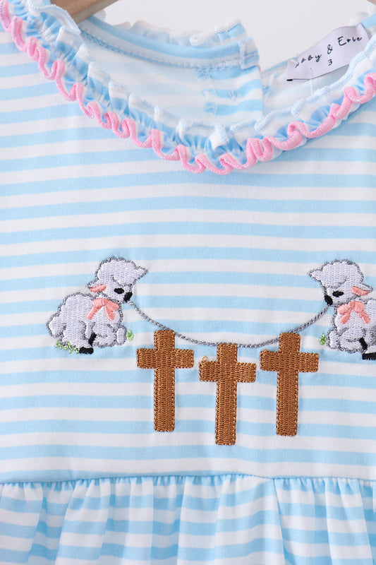 Blue gingham butterfly & bee pocket ruffle shorts set