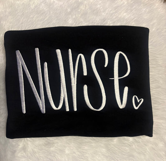 Black & White Nurse embroidered Adult Crew Neck Sweatshirt.