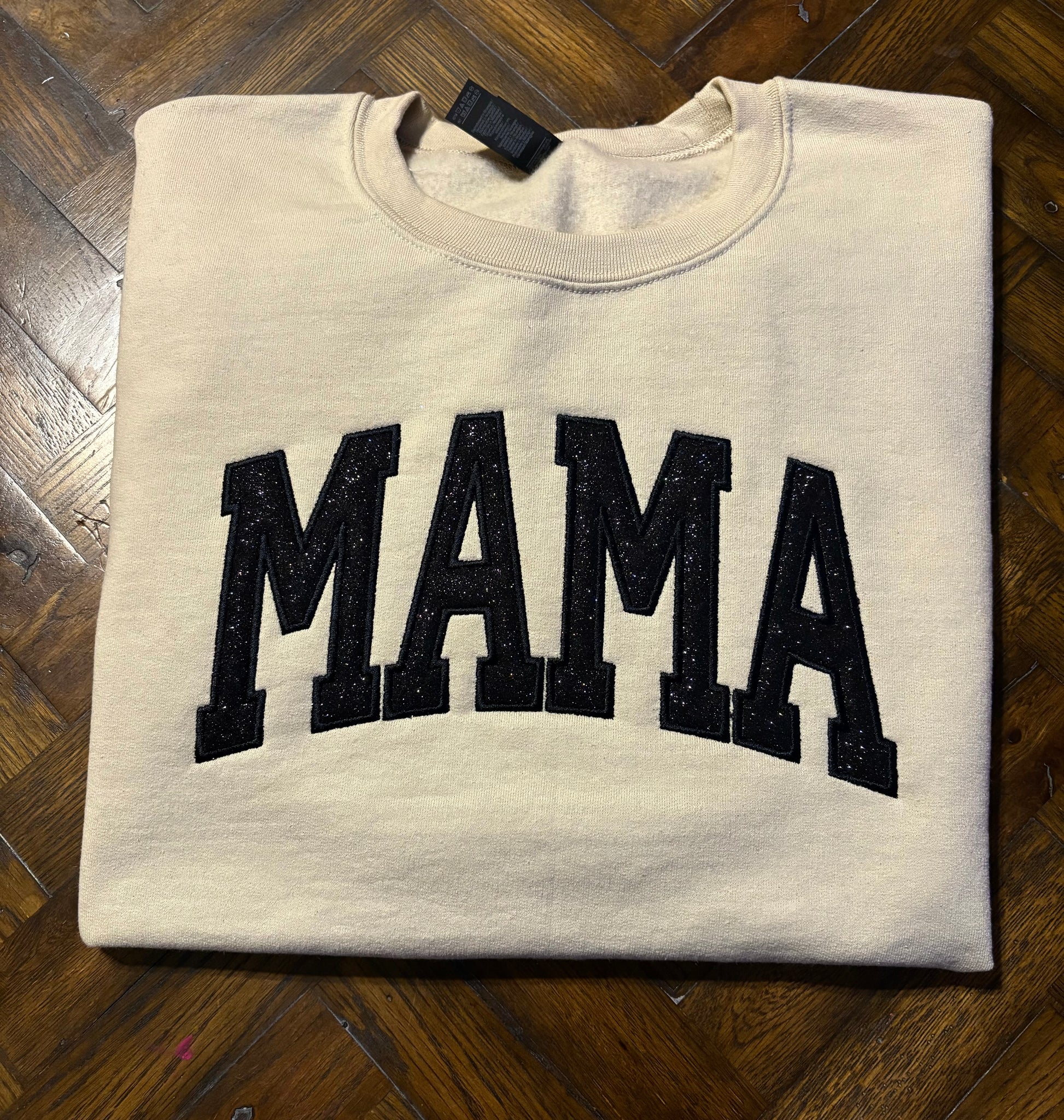 Mama embroidered black glitter vinyl sweatshirt