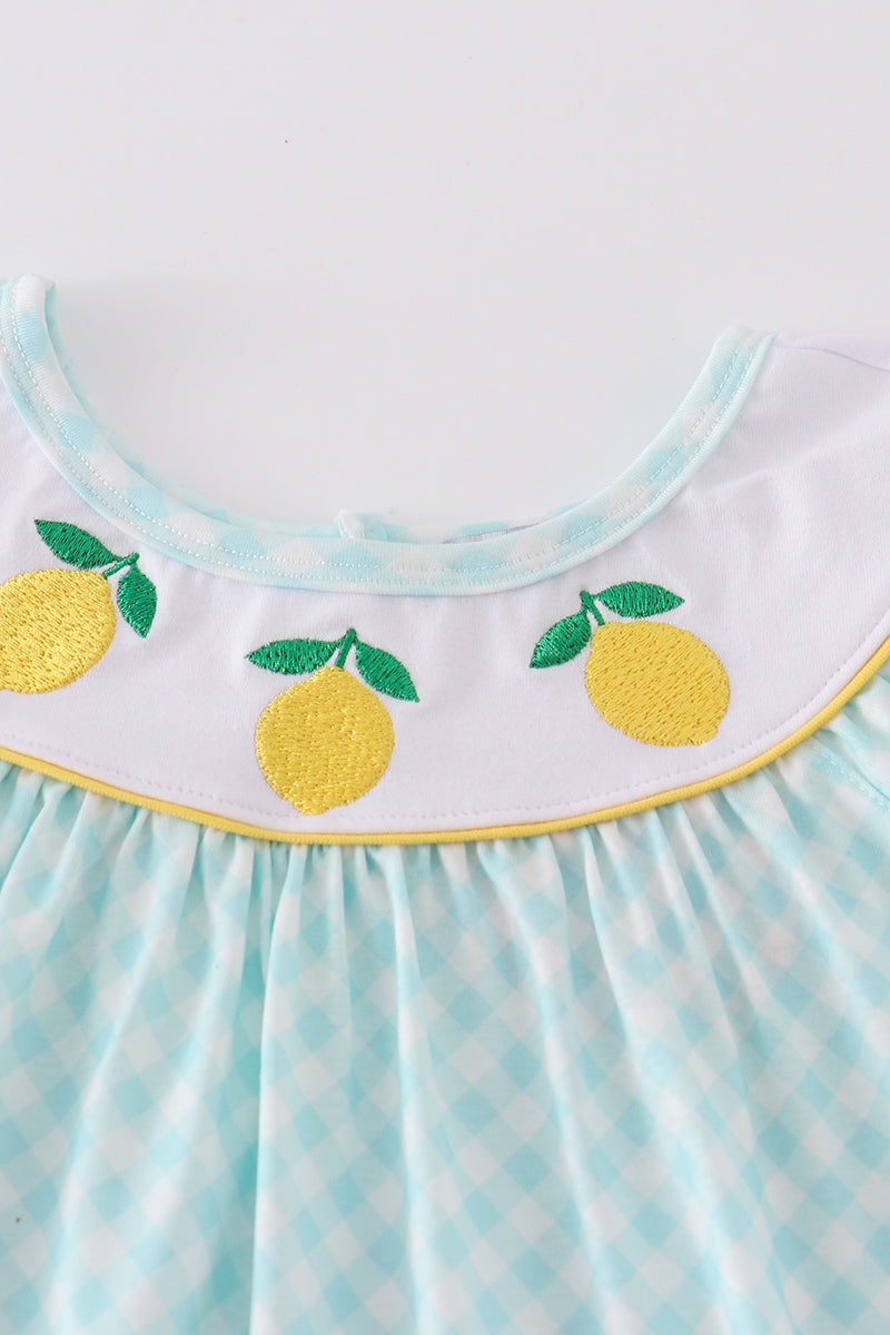 Mint lemon embroidery girl dress