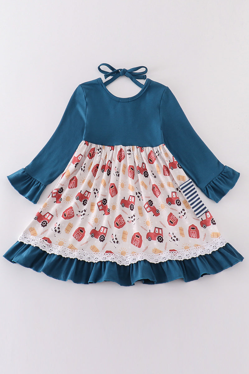 Navy farm french knot dress