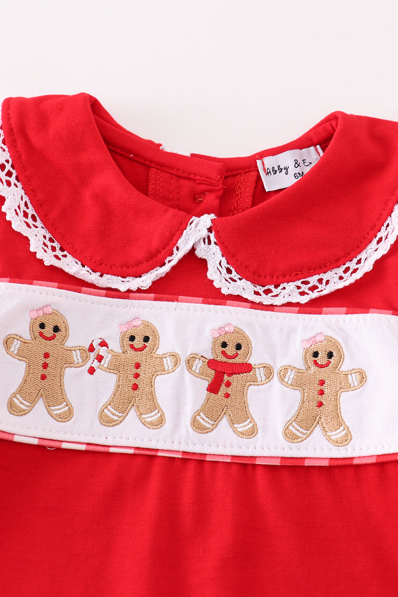 Red christmas gingerbread embroidery girl romper